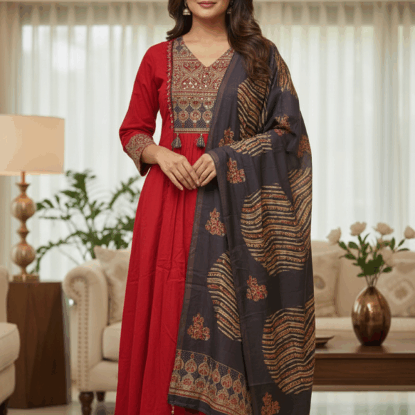 Maroon Elegance: Pure Cotton A-Line Kurta Set with Palazzo