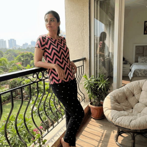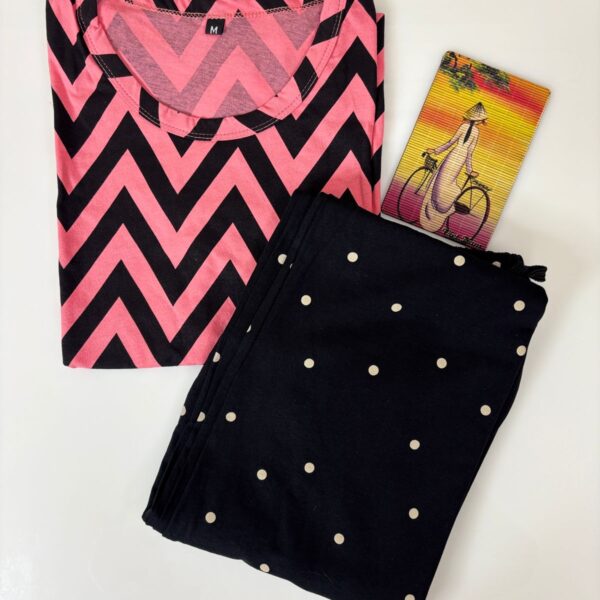 Pink Chevron & Black Polka Dot Cotton Lounge Set