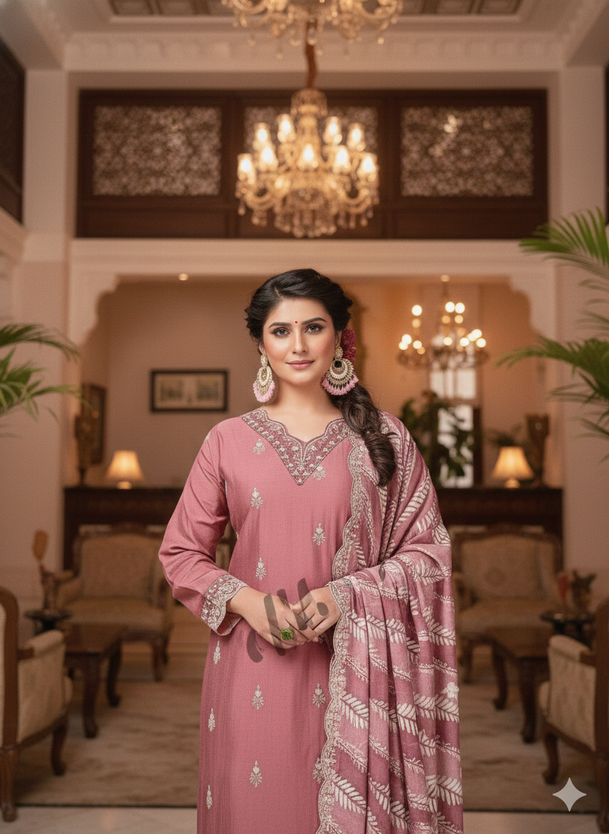 Be the first to review “Dusty Rose Embroidered Kurta Set-Big size” Cancel reply