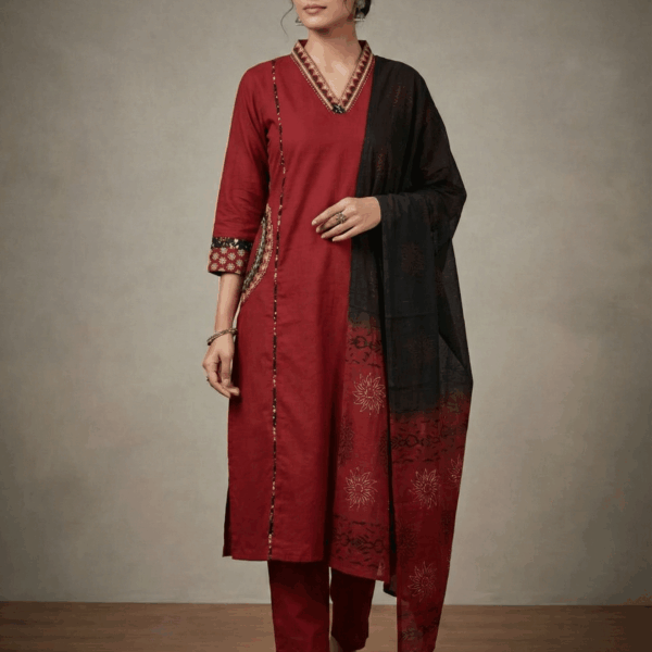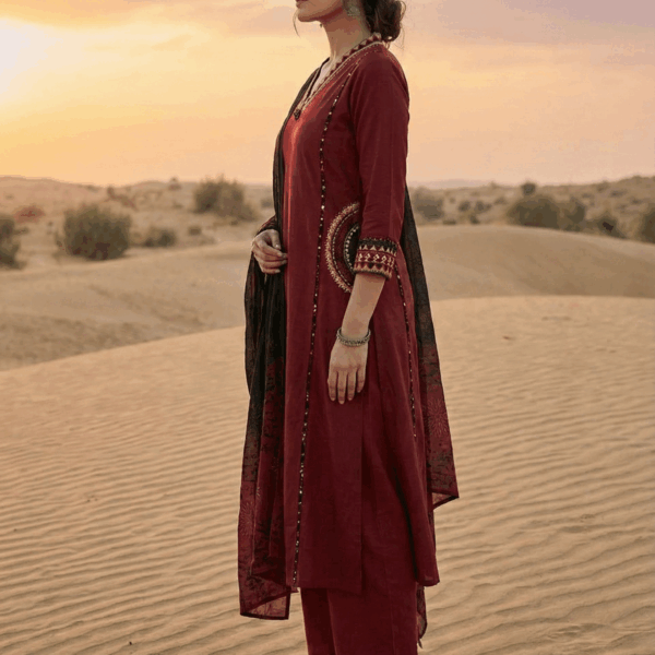 Maroon Elegance: Pure Cotton A-Line Kurta Set with Palazzo