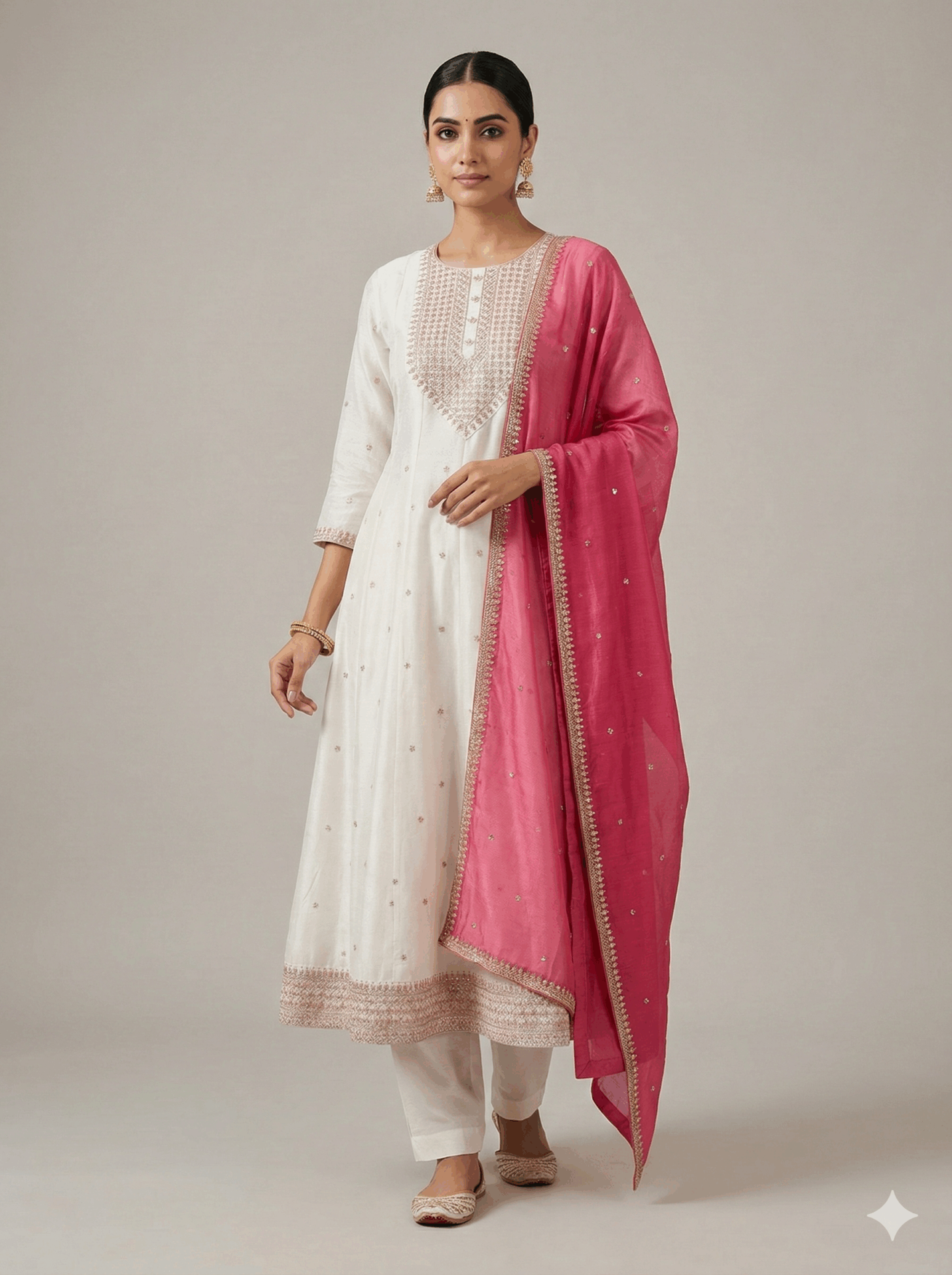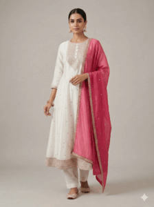 Be the first to review “Ethnic wear – Anarkali -White Embroidered Silk Anarkali Suit Set with Contrast Dupatta” Cancel reply
