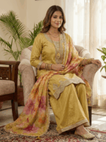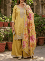 Be the first to review “Ethnic wear – Goergette Shiffon mixed – Sharara patten with organsa scalap work duppata” Cancel reply