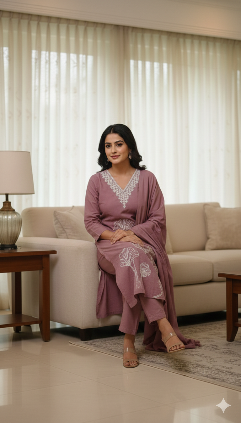 Elevate your everyday ethnic wardrobe with our Pastel Purple 3-Piece Salwar Set. Combining the breathable comfort of high-quality cotton mix with the sophistication of modern craftsmanship, this ensemble is designed for the woman who values both style and ease.