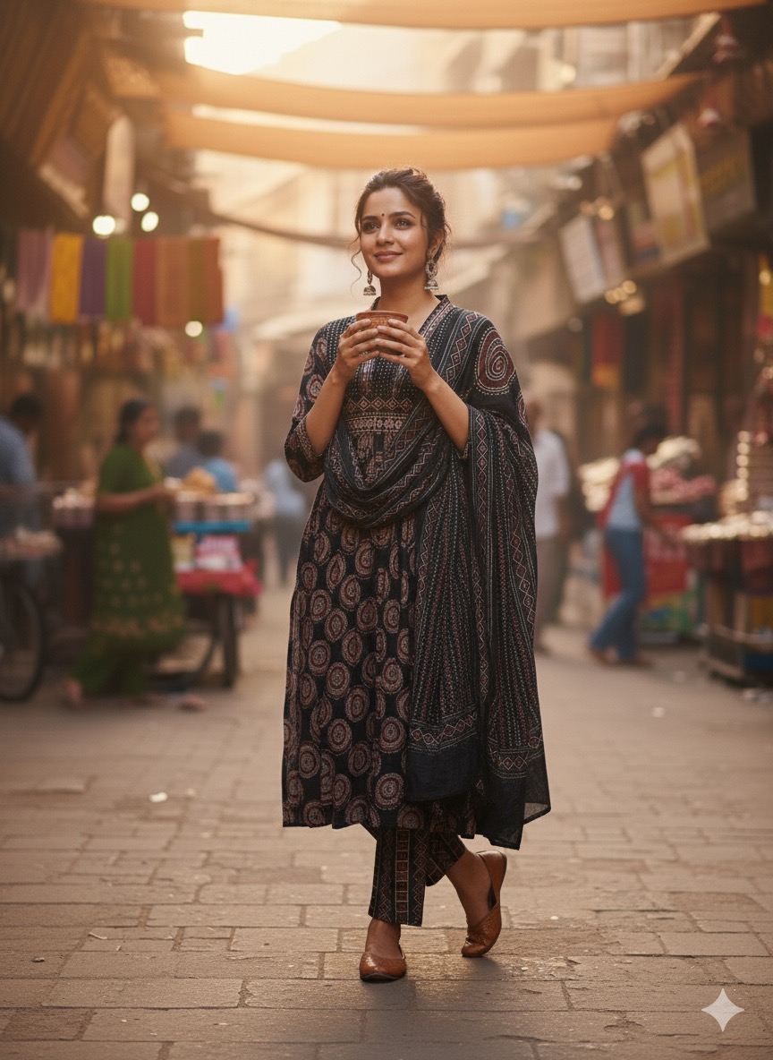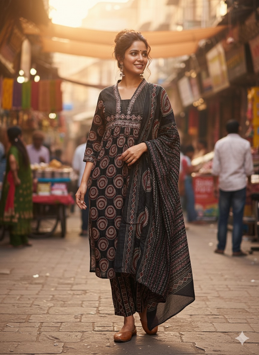 Heritage Meets Modernity: Black Ajrakh Cotton Set