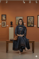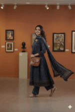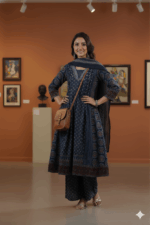 Be the first to review “Midnight Blue V-Neck Umbrella Kurta Set with Wide-Leg Palazzos” Cancel reply