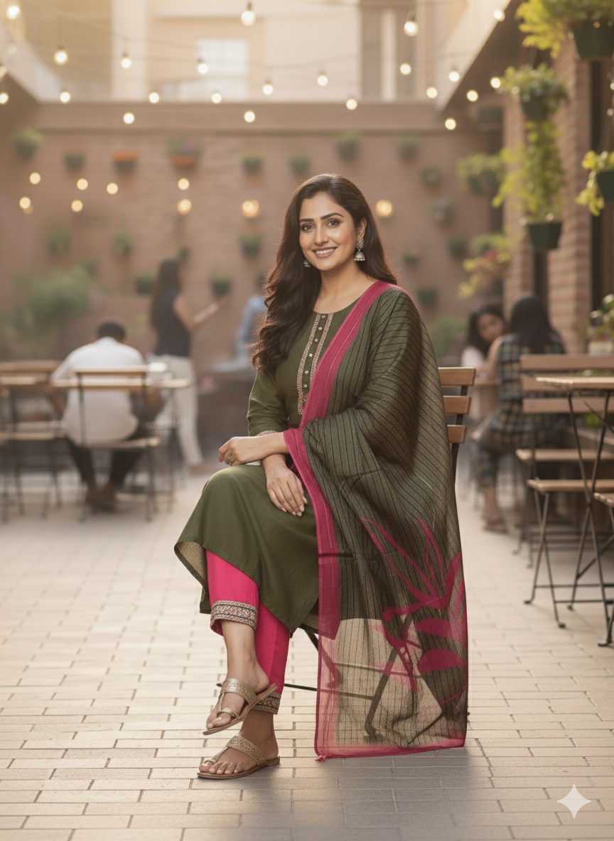 Flowy, elegant, and full of charm — this floral Anarkali features intricate prints and soft rayon fabric. Perfect for festive gatherings and family occasions.