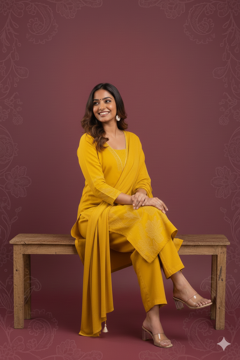 Be the first to review “Radiant Mustard Floral Embroidered Mul Cotton Kurta Set” Cancel reply