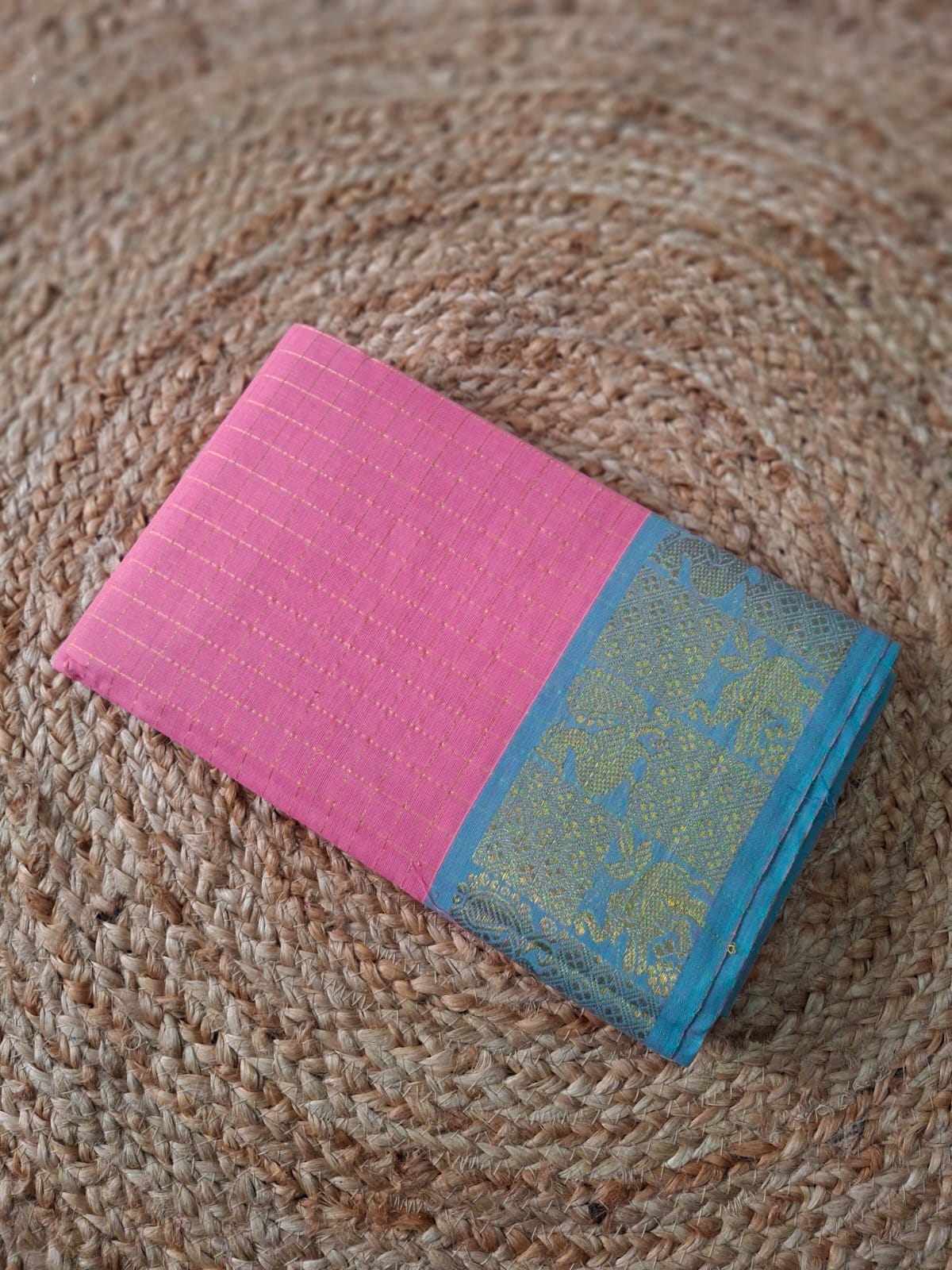 Classic Chettinad Handloom Cotton Saree with Contrast Border
