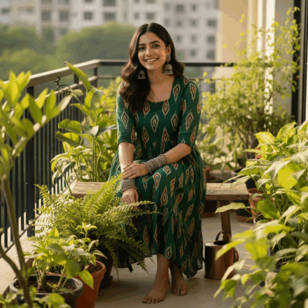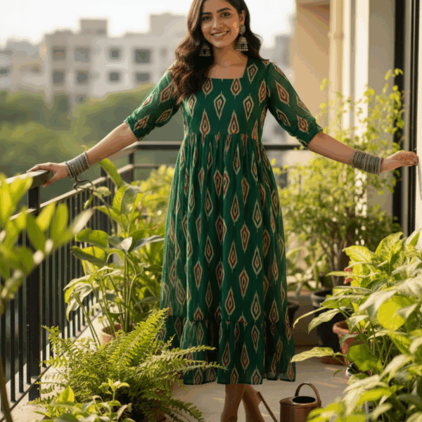 Women’s Emerald Green Ikkat-Inspired Maxi