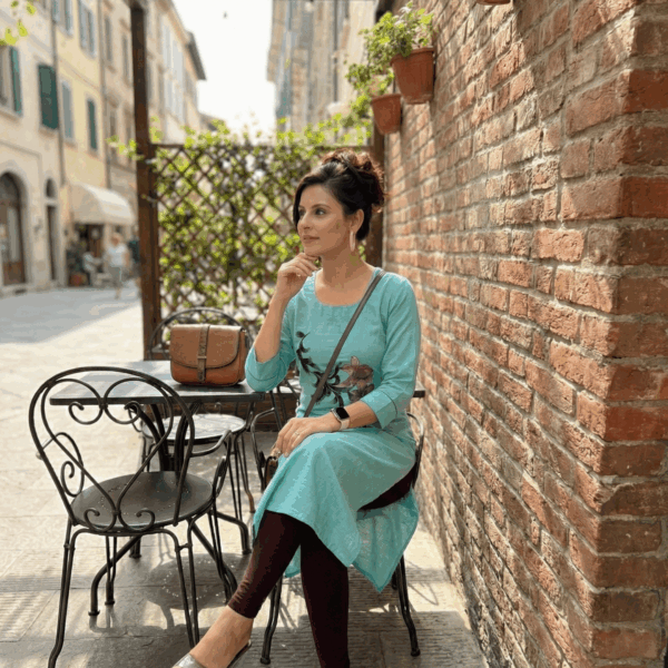 Women’s Floral Embroidered Straight Kurta – 3/4 Sleeve Cotton Blend Ethnic Wear for Office & Casual Use
