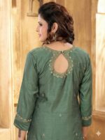 Design: Chanderi Silk floral Embroidery- 3/4th sleeve-Pastel Green+ Back neck Pattern