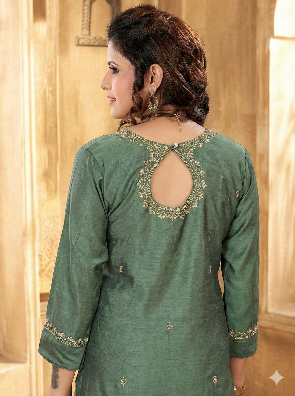 Be the first to review “Women’s Chanderi Silk Blend Straight Kurti with Zari Embroidery & Keyhole Back Design” Cancel reply