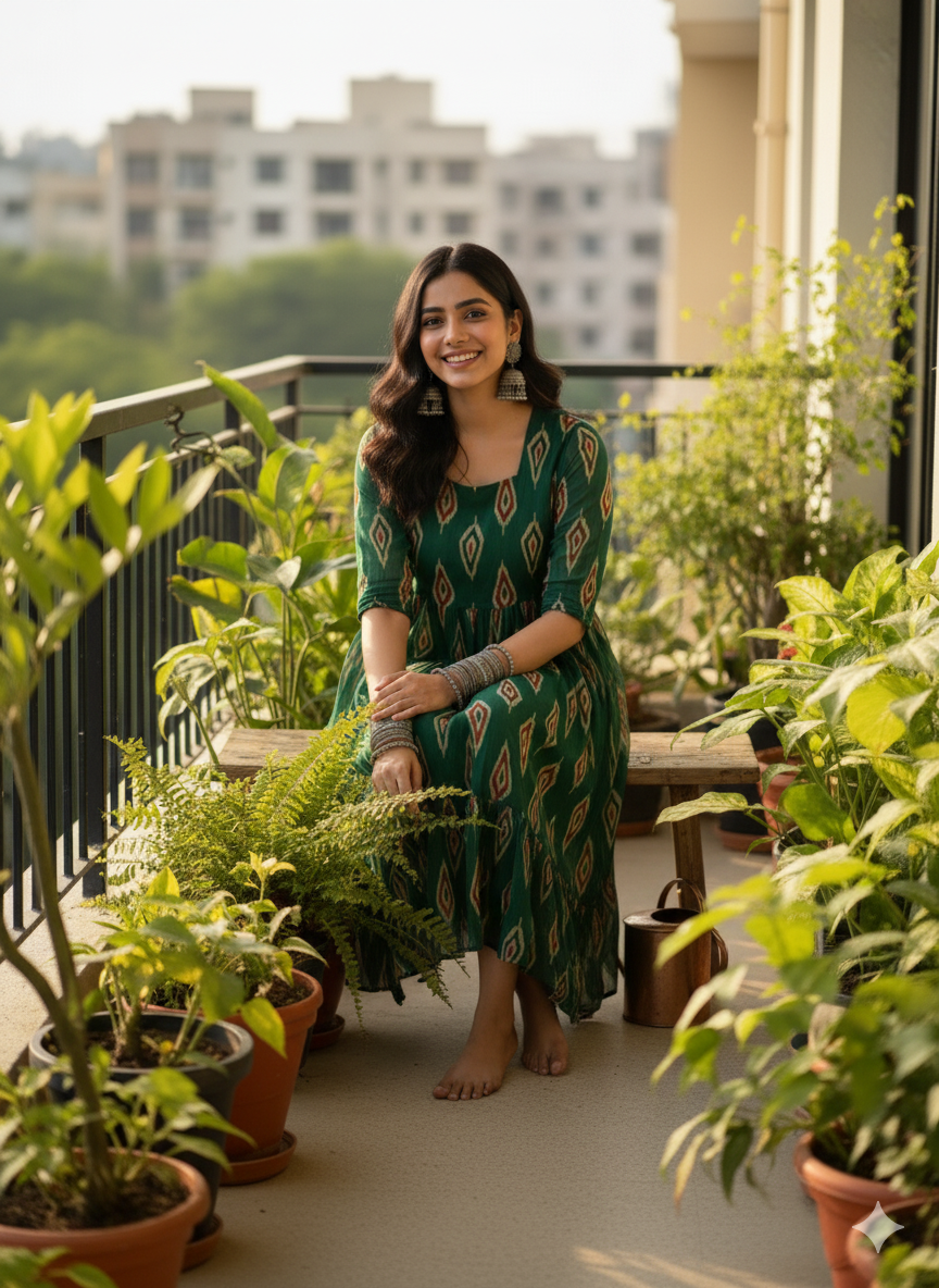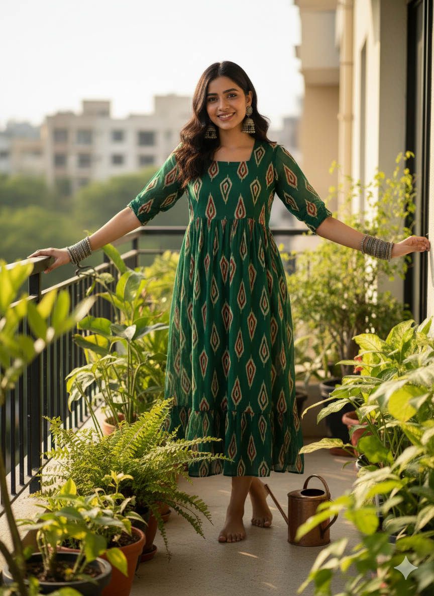 Women’s Emerald Green Ikkat-Inspired Maxi
