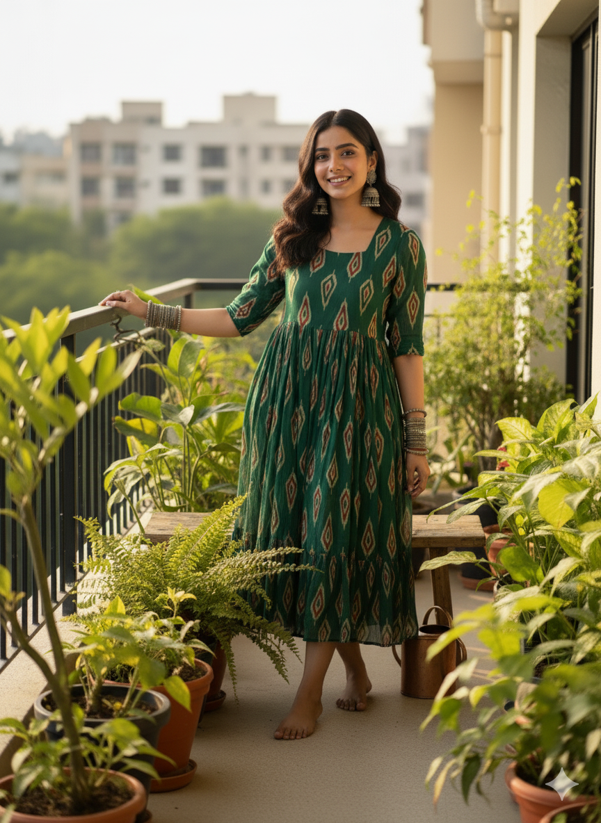 Be the first to review “Women’s Emerald Green Ikkat-Inspired Maxi” Cancel reply