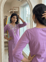 Be the first to review “Women’s Lavender Cotton Kurta with Floral Neck Embroidery” Cancel reply