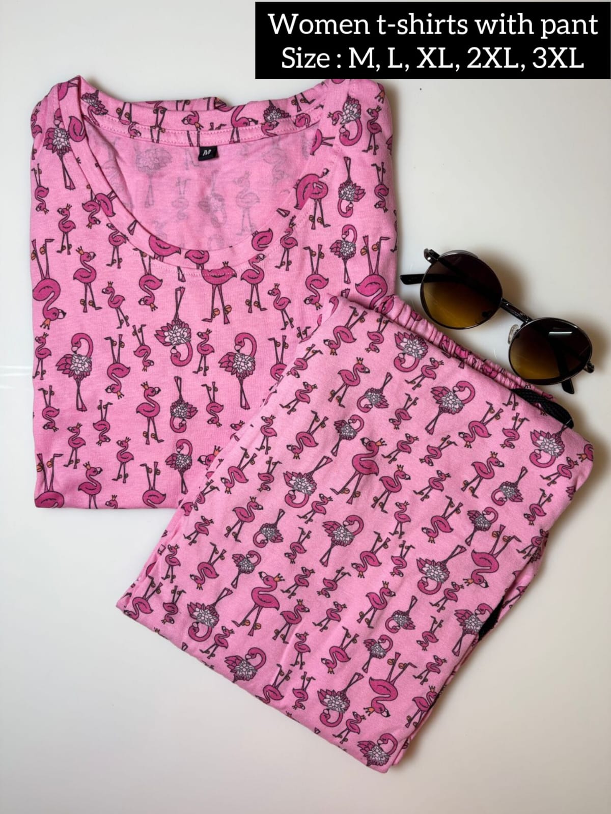 Be the first to review “Women’s Pink Flamingo Print Nightwear Set – Soft Lounge T-Shirt & Pants” Cancel reply