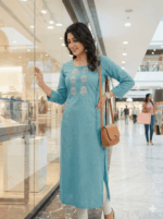 Be the first to review “Women’s Teal Blue Cotton Slub Kurta with Ethnic Yoke Embroidery” Cancel reply