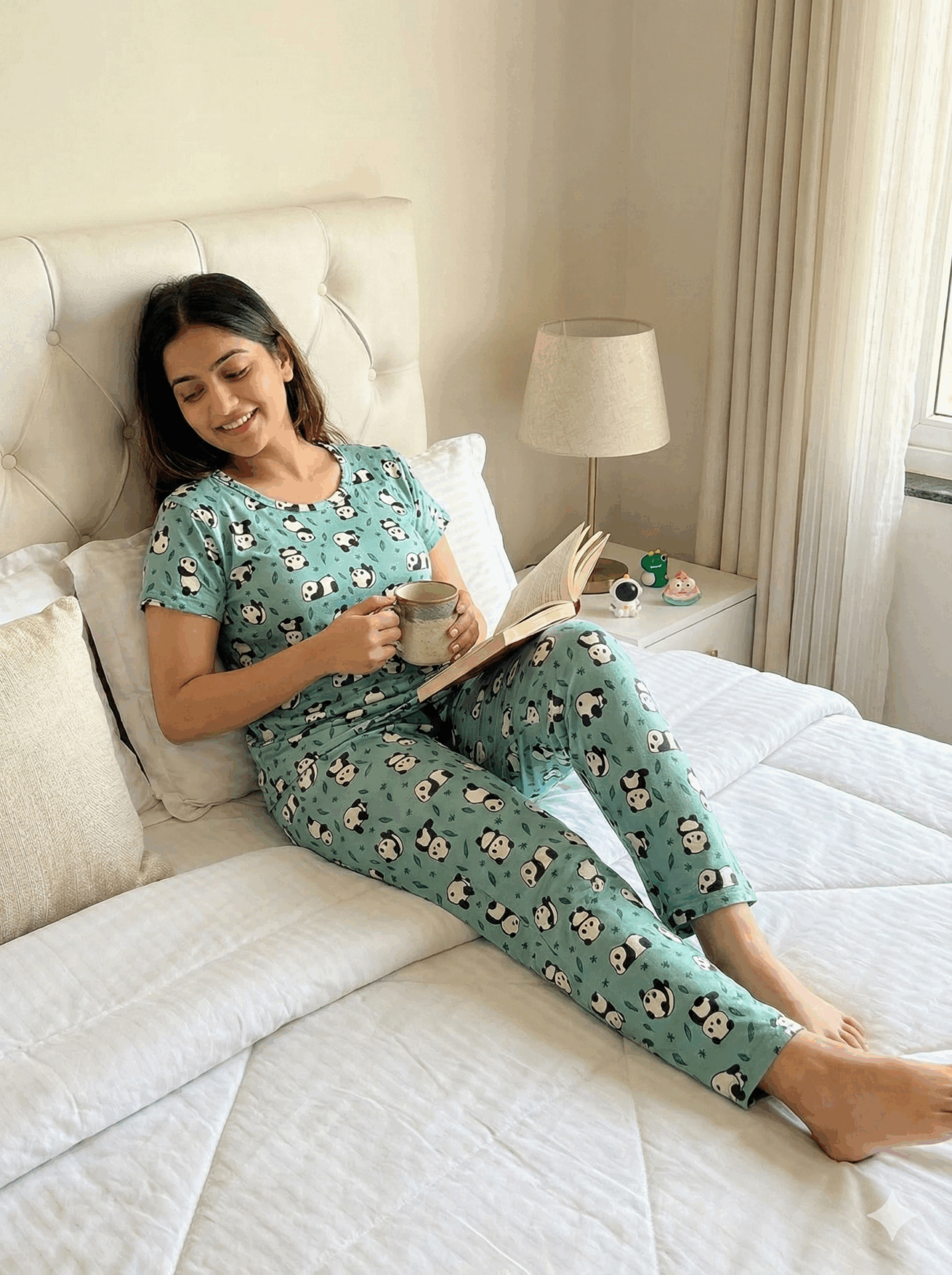 Be the first to review “Women’s Teal Green Panda Print Cotton Lounge Set” Cancel reply